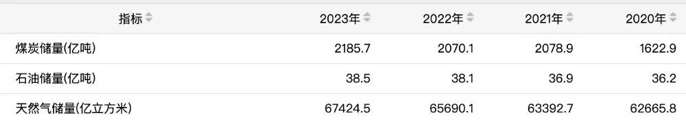 国家统计局公布的煤炭、石油、天然气的储量